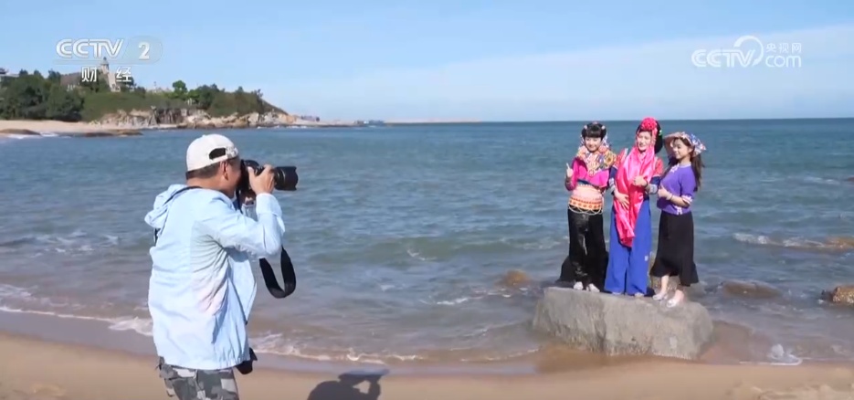 央视网消息:眼下,在福建泉州市惠安县,滨海旅游持续升温,许多游客来到海边体验非遗服饰,打卡拍照。